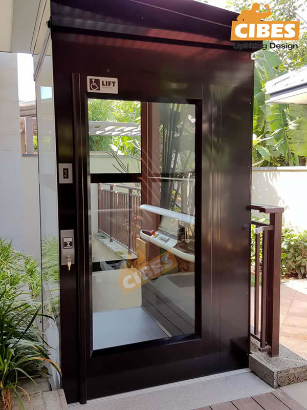CIBES家用電梯于近日安裝于海南三亞石梅灣,電梯一共三層三站,預留空間1400*1630mm,安裝于業主家中入戶花園天井,電梯整機采用R9017黑色,一面鋼板井道三面玻璃井道,內部可用平臺空間1000*1500mm。